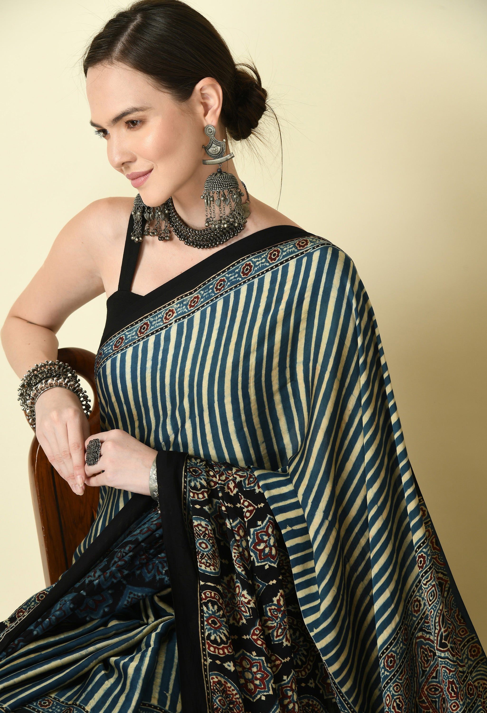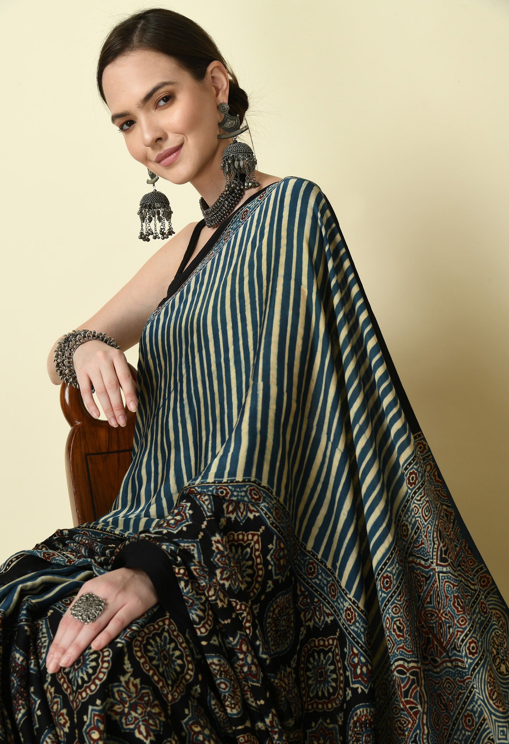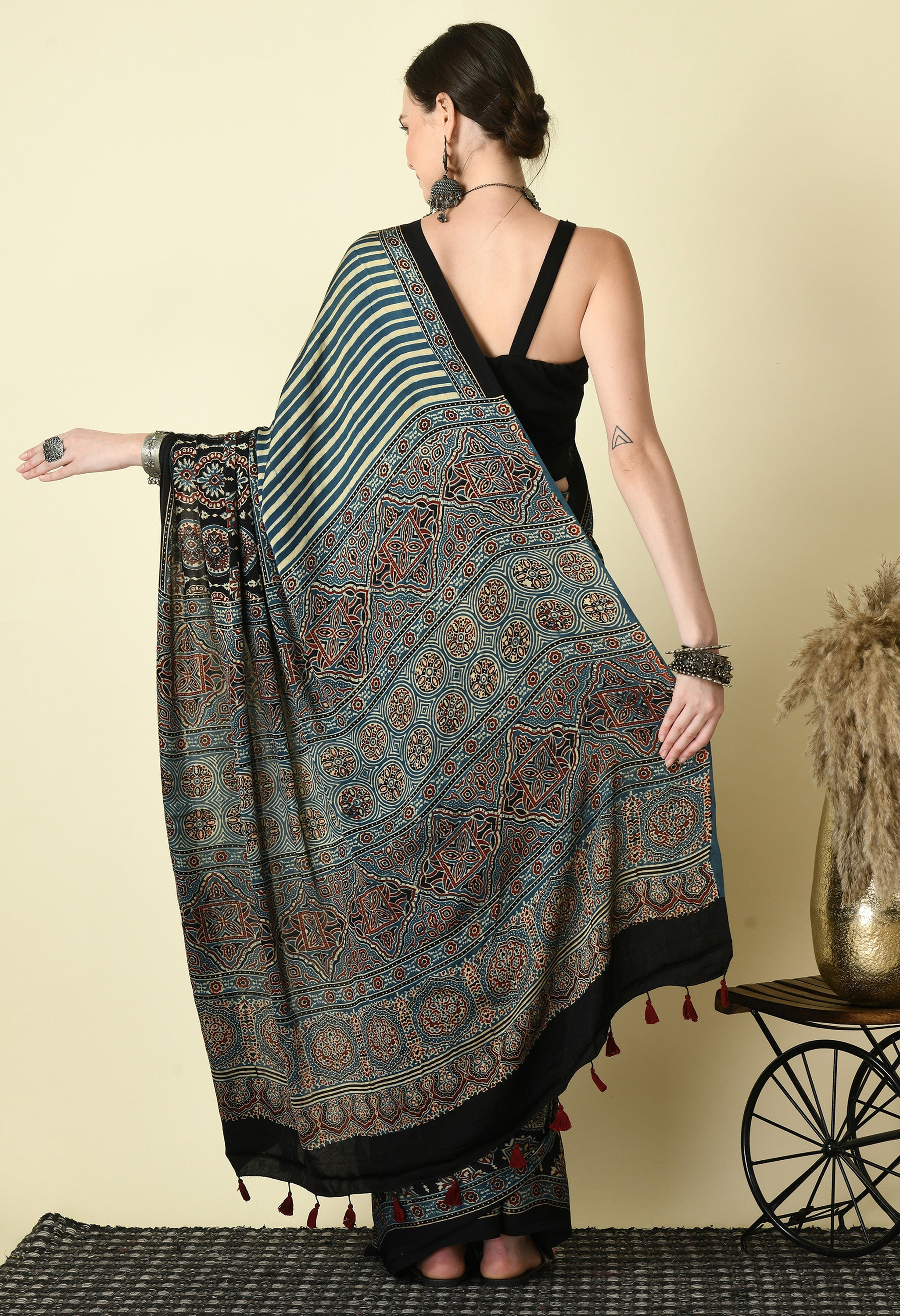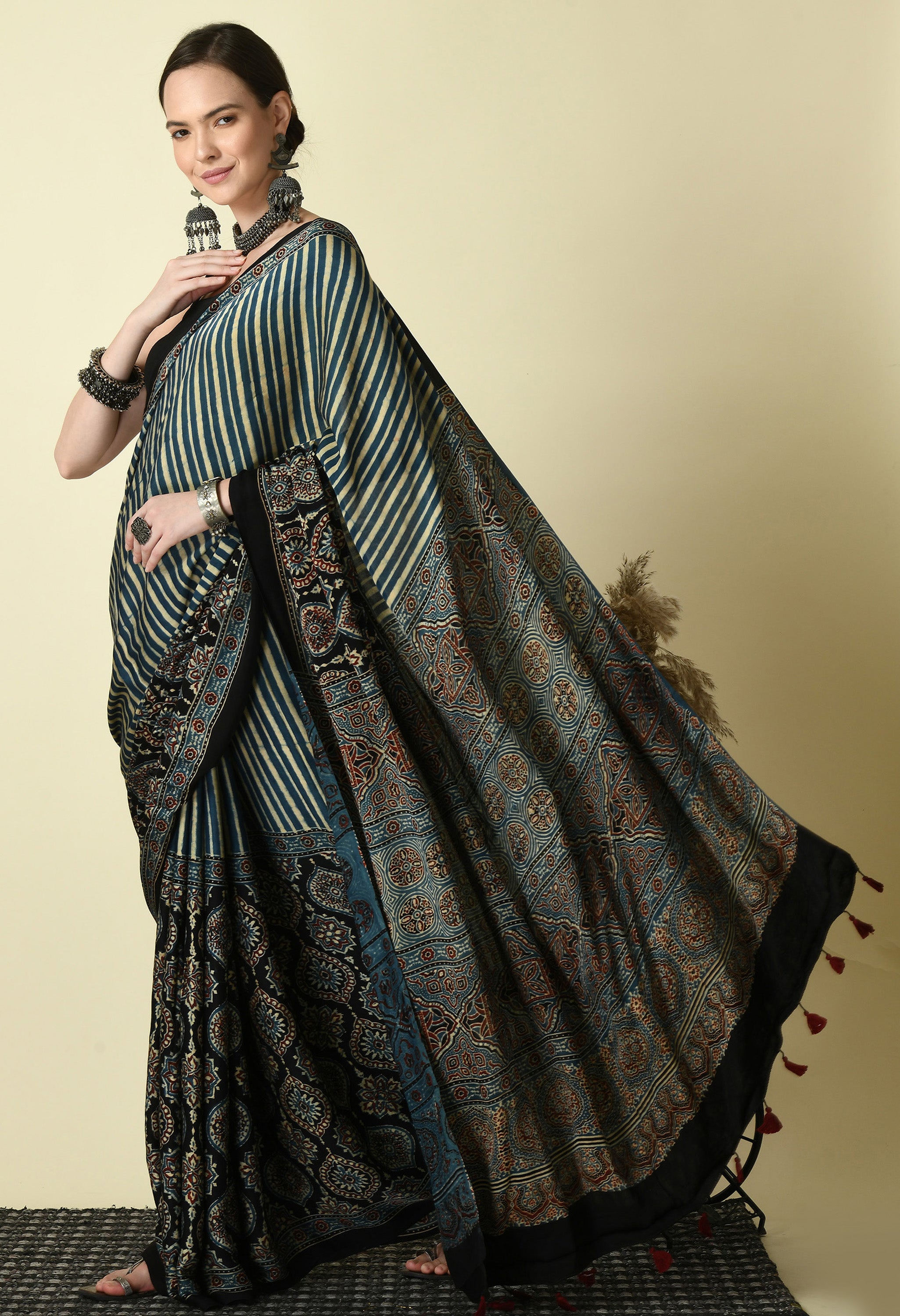 Naturally Dyed Ajrakh Modal Saree