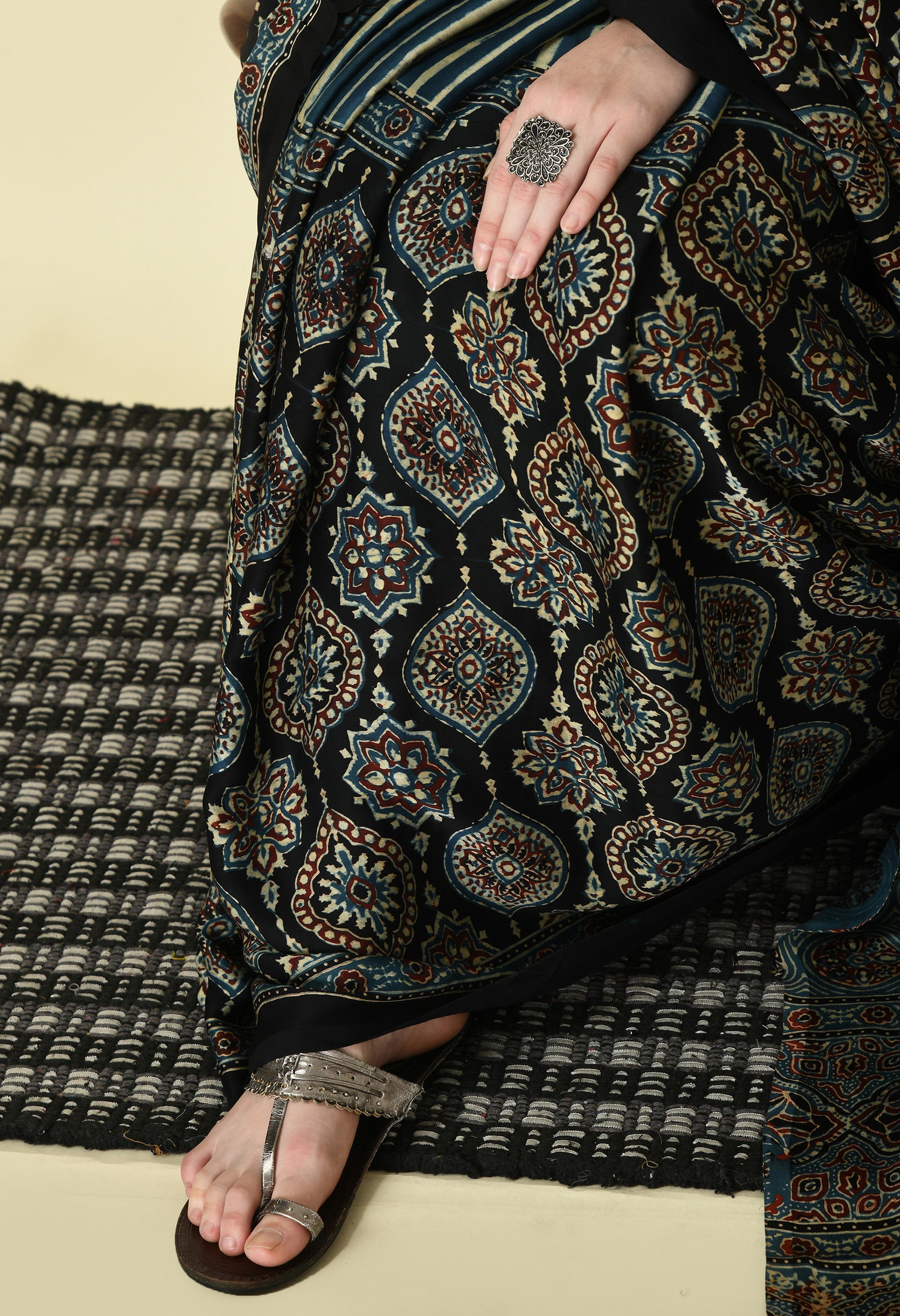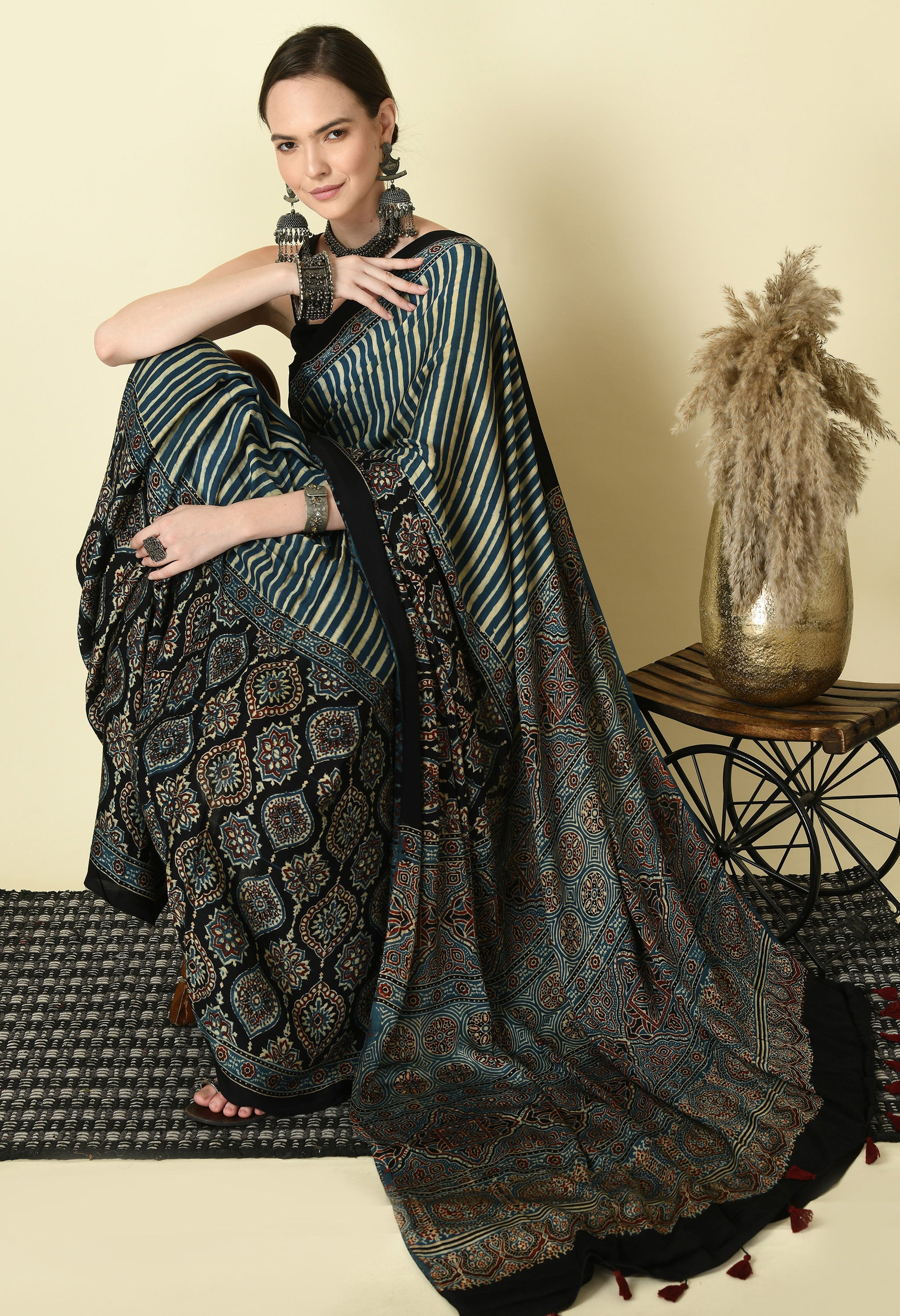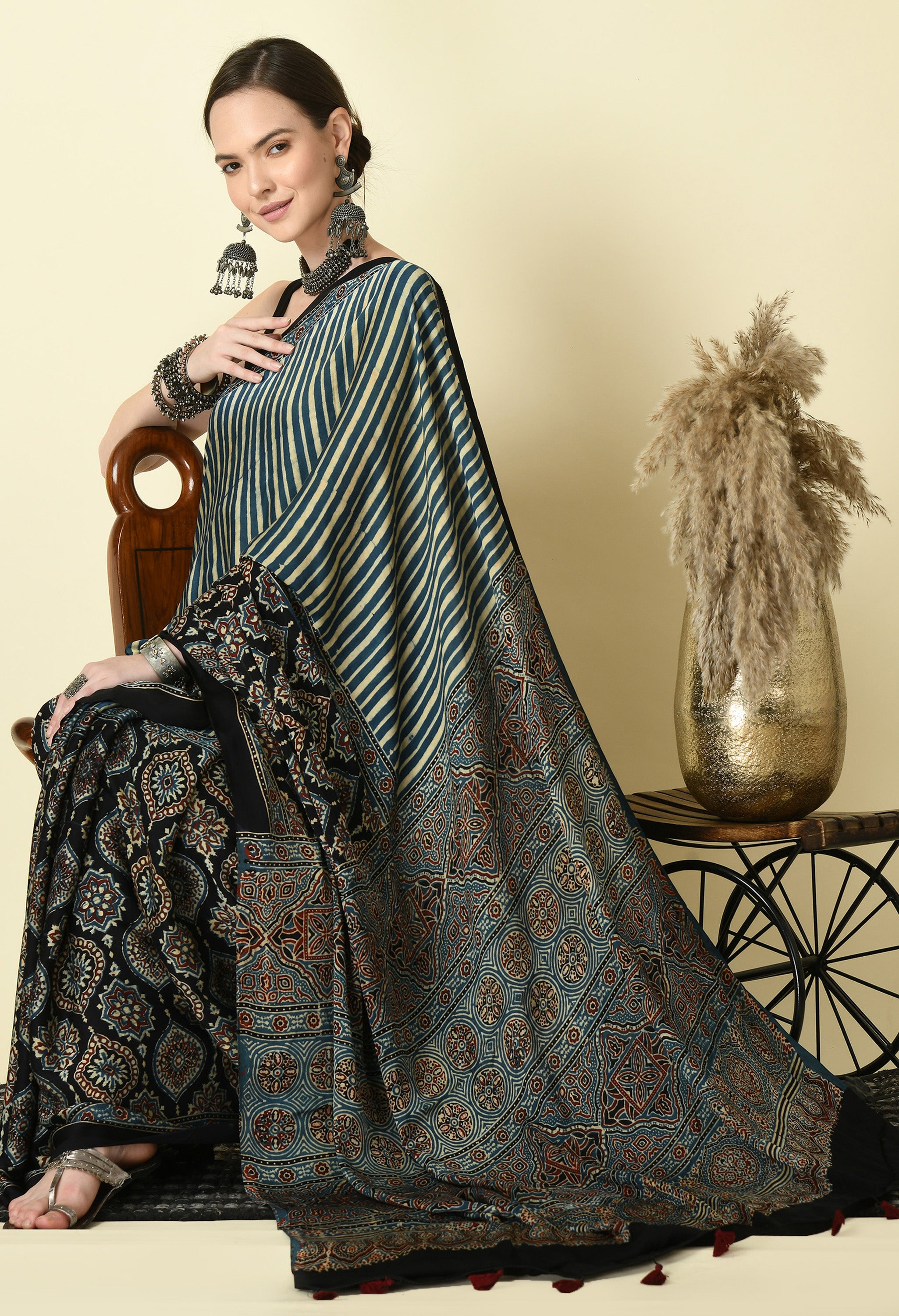 Craft : Traditional Ajrakh Block Print Saree